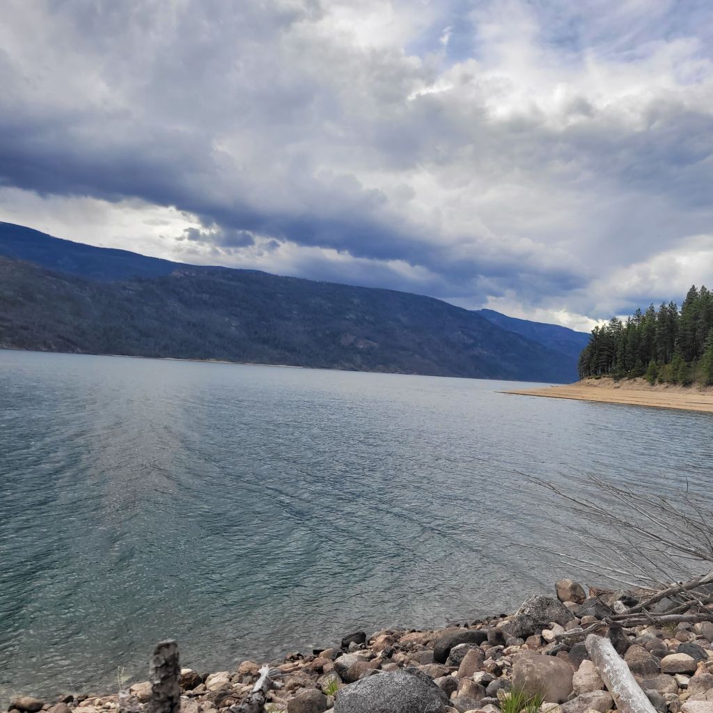Arrow lakes is steeped in memories of my dad. I didn’t know if I’d ever seen Sunshine Bay as we went shore access, not on a boat, yesterday. The shoreline is cragged with fallen rocks, it’s perfect scramble exercise to trek along it. Across the bay, you see mountains, covered in trees, soft rolling hills.